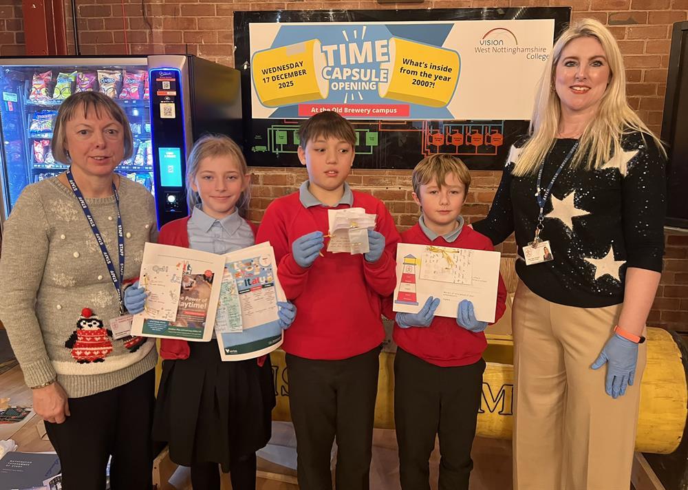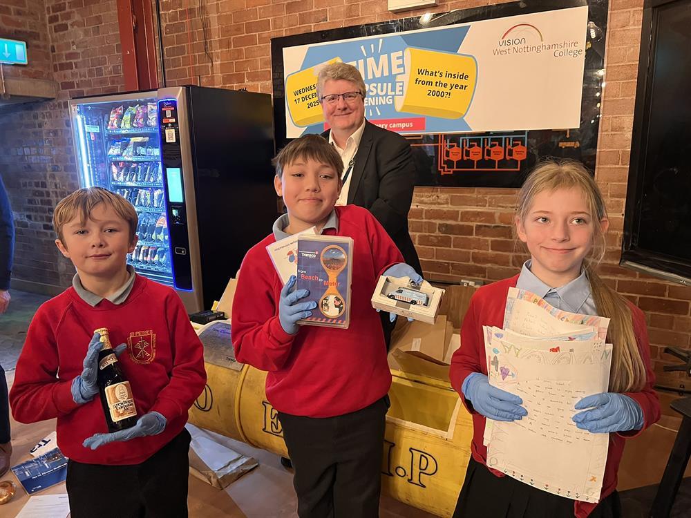 Children and teachers from St Peter’s Primary School, King Edward Primary School and Sutton Road Primary School joined college staff and students to share in the moment, before pupils added their own contributions to represent life in 2025. Artefacts from the schools included a school jumper, creative artwork, school dinner menus, badges and Pokemon cards.