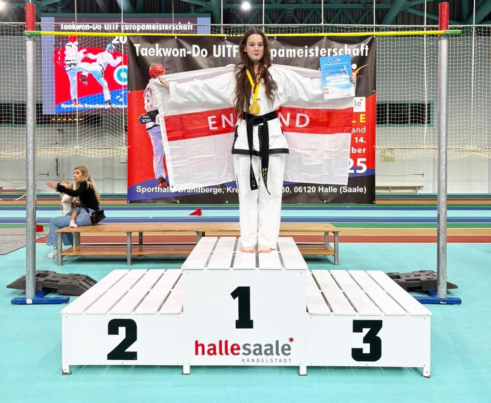 The Level 1 Hospitality and Catering student recently returned from Germany, where she competed in the European Taekwondo Championships, bringing home gold and bronze medals.