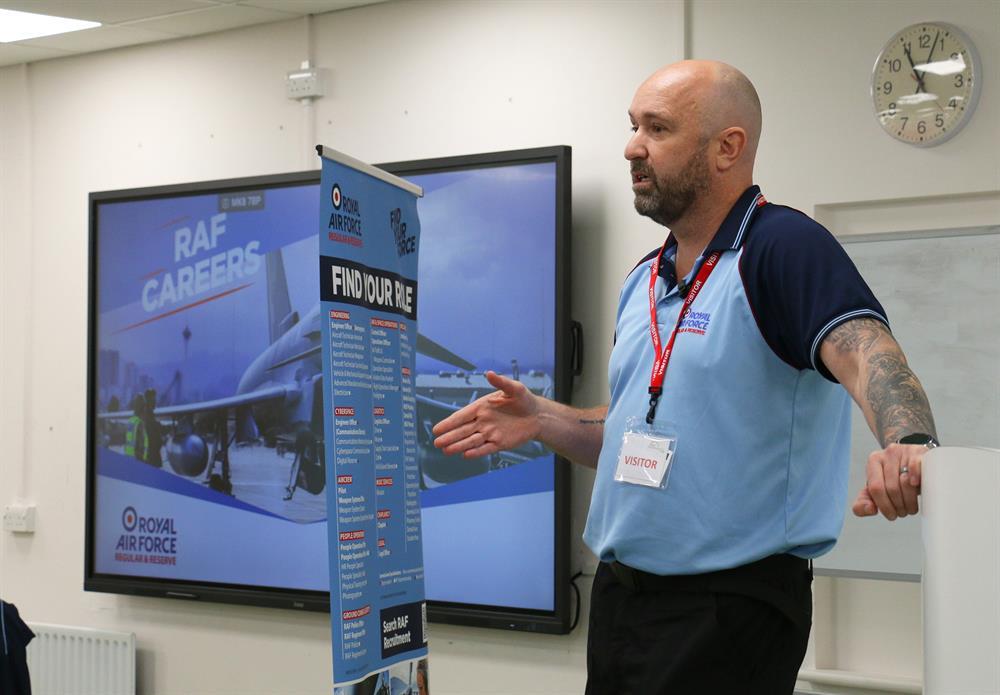 The week also featured a captivating session with Stuart Mulligan, a cyberspace engineer in the Royal Air Force. With 27 years of service behind him, Stuart gave an open and detailed look at the technical roles available in the military and the training routes that support them.